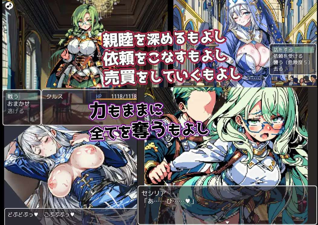 许多冒险家聚集在您访问的城市中。可以攻击大部分角色,如果你赢了,你可以偷走装备或强奸某人。您还可以接受个人请求并买卖物品。是否合作或使用它取决于玩家。