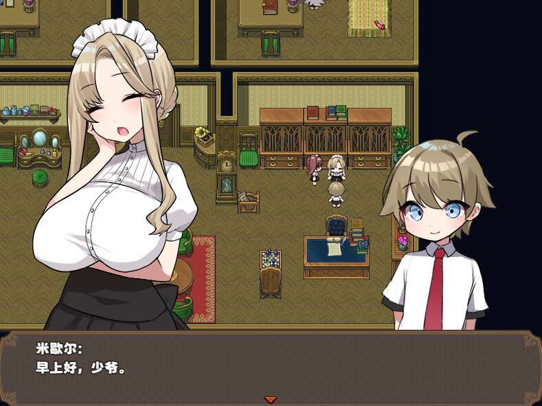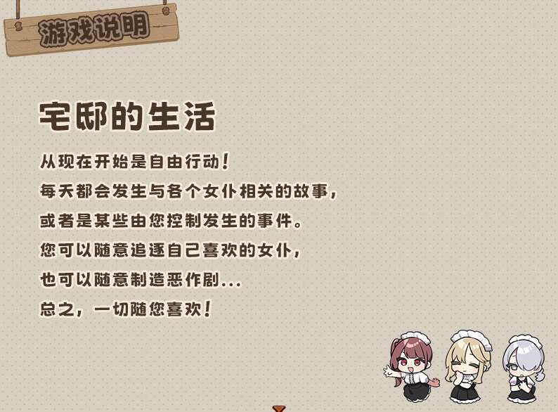 这是一款模拟日常的游戏,玩家将扮演小主人,通过与各位女仆的日常互动,