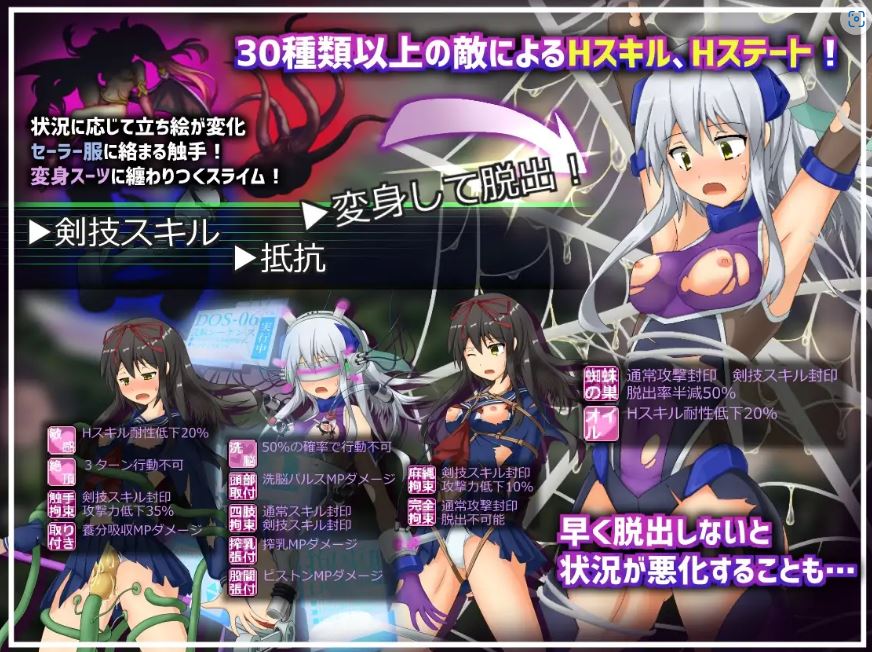 ■抵抗束缚与催○!根据敌人的H攻击而变化的战斗风格与多样的战斗H